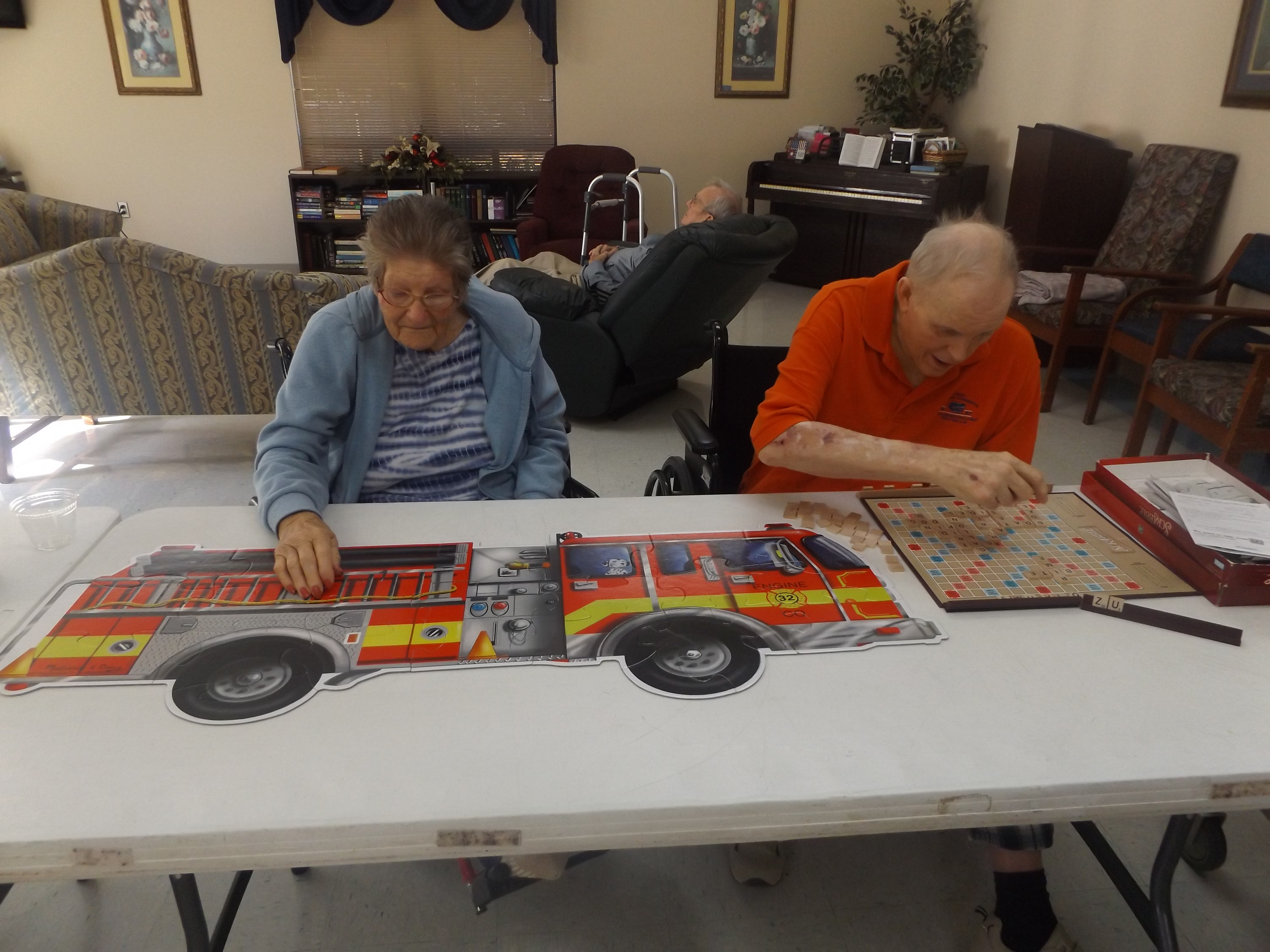- Table Games/Relaxation with residents (left to right) Elnora Davis, Harold Eberlin, and Thomas O’Dell.